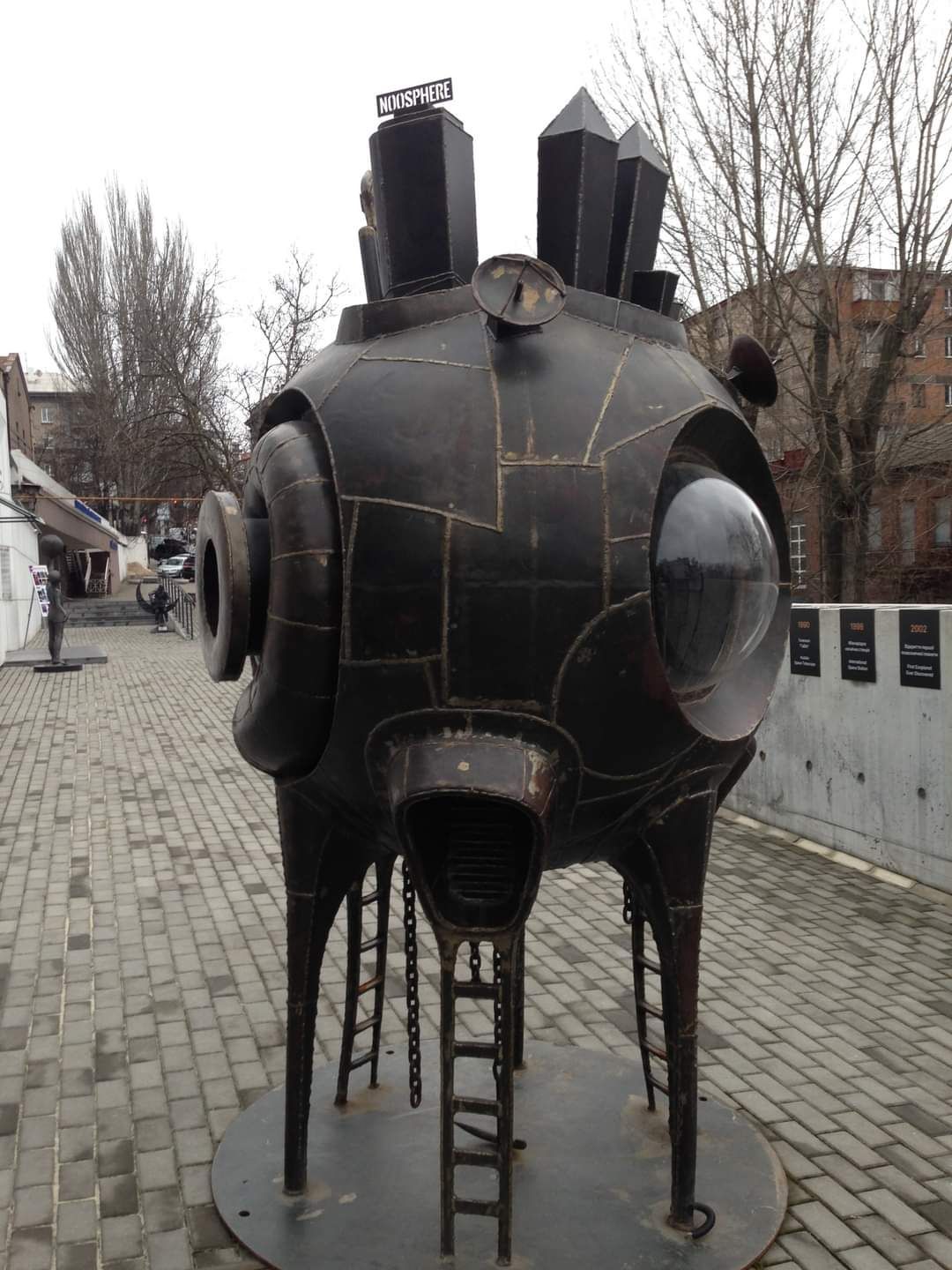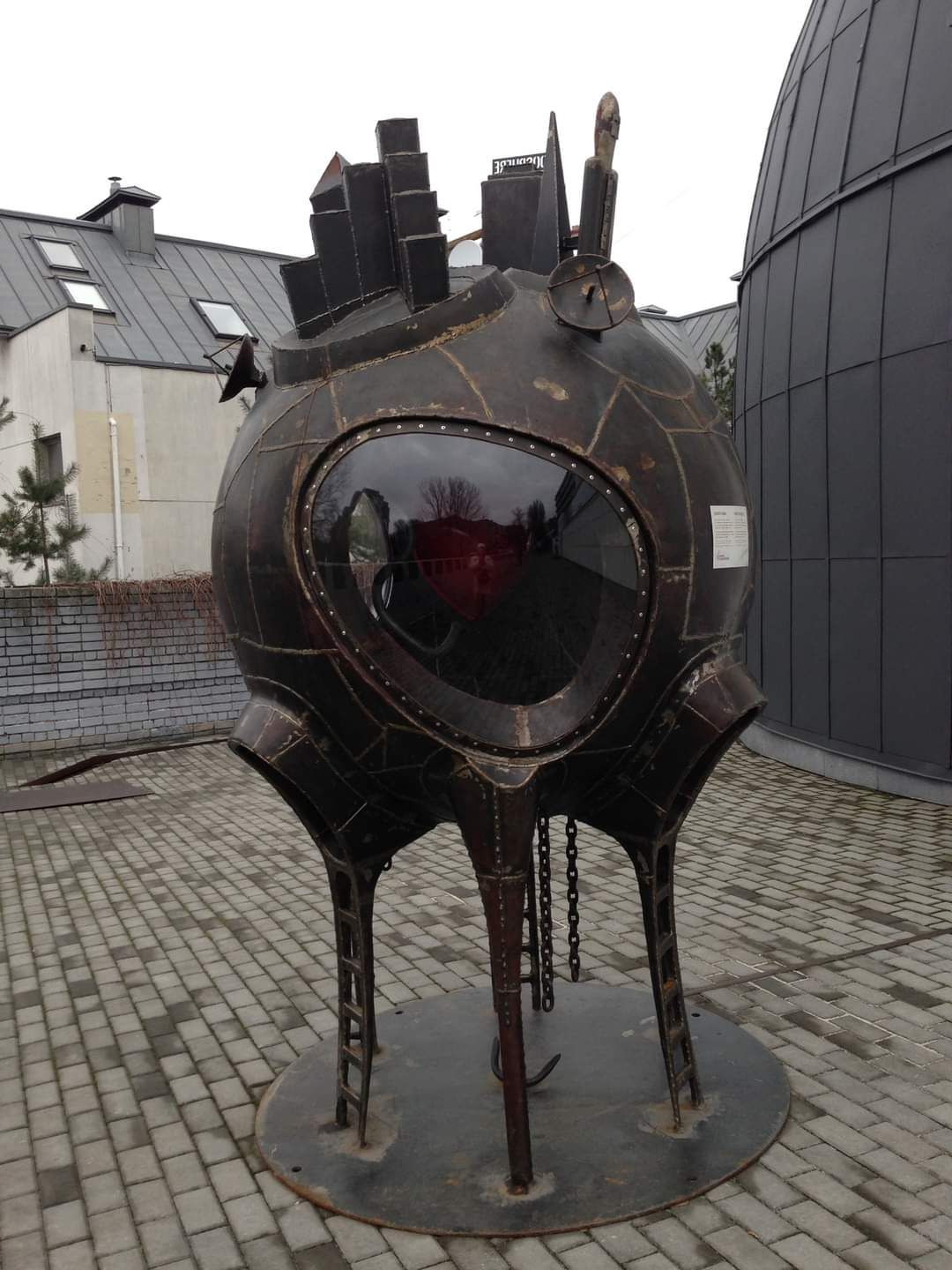 Одна із скульптур нагадує інопланетний корабель прибульців. Кругла капсула на ніжках зроблена з металу, зверху прикріплені міні антени, а посередині прозорий ілюмінатор.