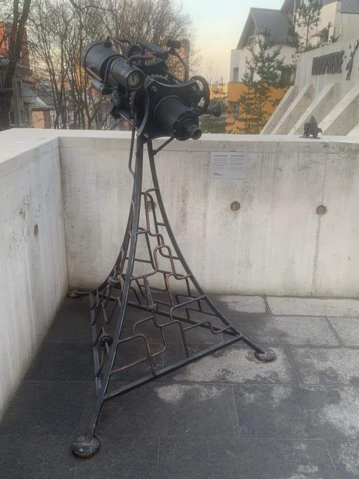 Окрім корабля біля планетарію стоїть кований телескоп, за допомогою якого можна було б спостерігати за польотом корабля прибульців.