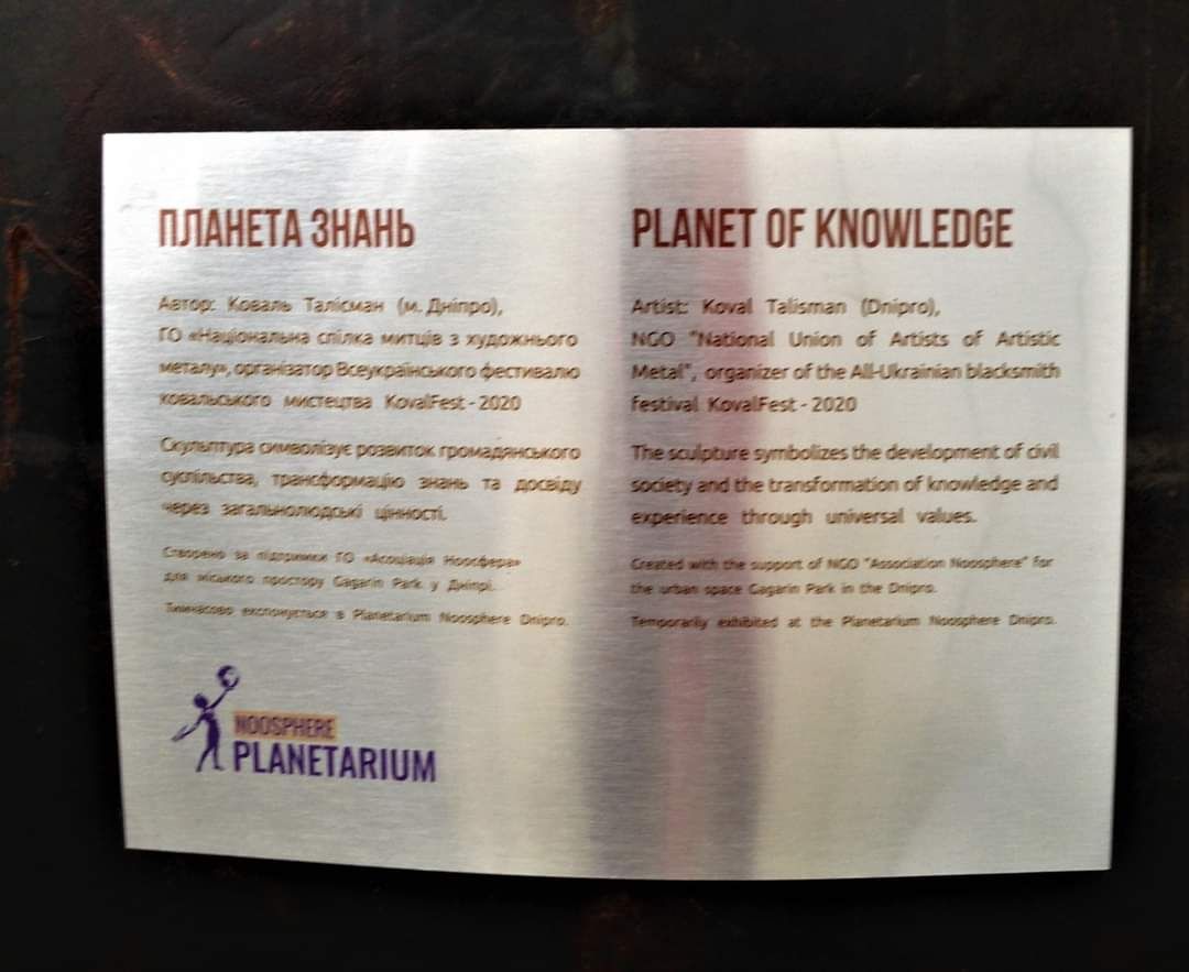 З'явилася конструкція біля планетарію нещодавно. Викував її відомий в Дніпрі коваль на прізвисько Талісман. Зазначається, що скульптура символізує розвиток громадянського суспільства, трансформацію знань та досвіду через загальнолюдські цінності.