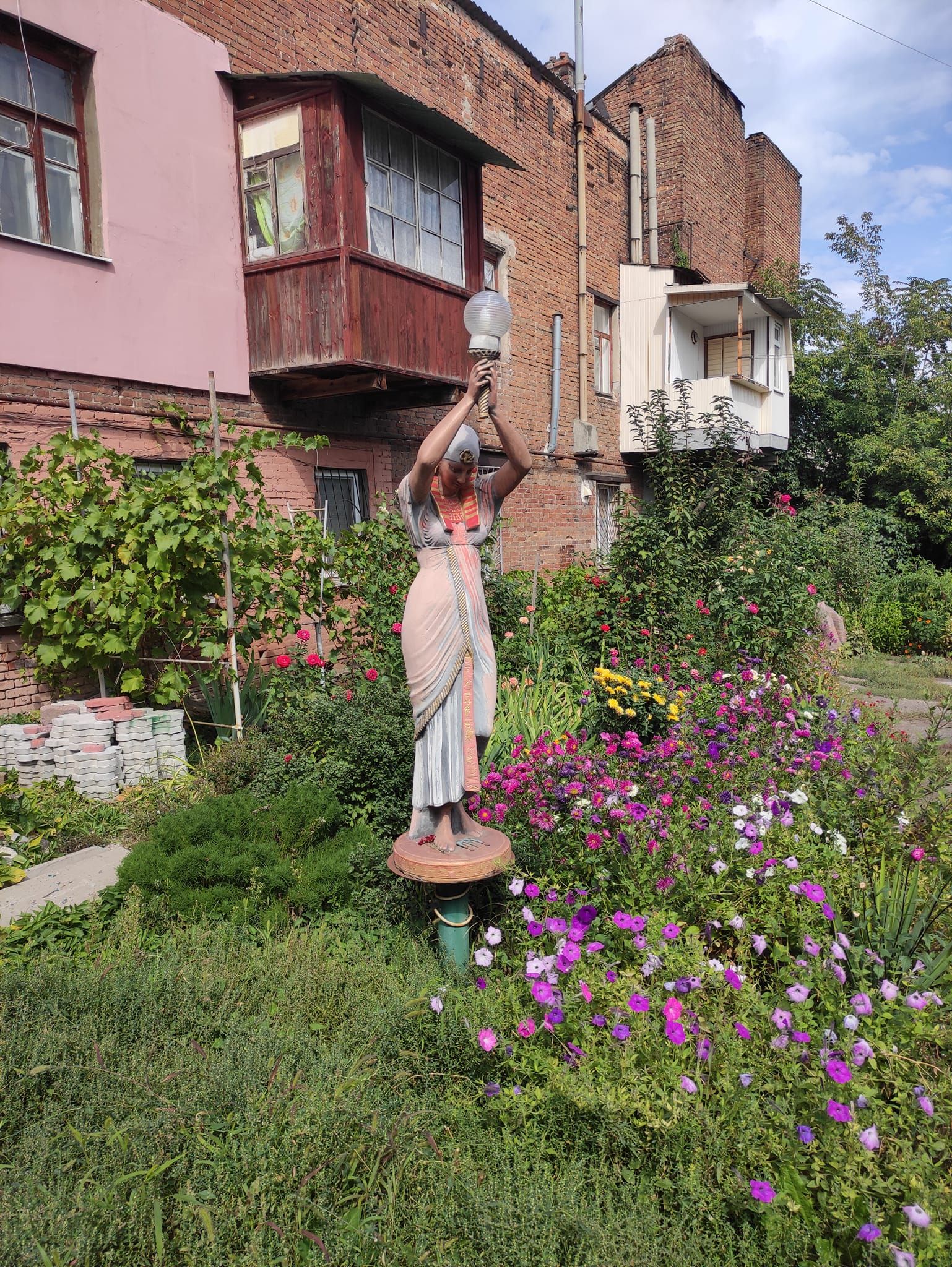 Ось таку незвичайну таку незвичайну статую виявила в одному із дворів на вулиці Бородінській. Коли увійшла на подвір'я, не зразу й зрозуміла, що це статуя. Подумала, може якийсь обряд у дворі проводять, - зазначила авторка допису.