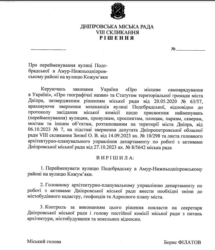 Про це сказано у проєкті рішення Дніпровської міської ради.