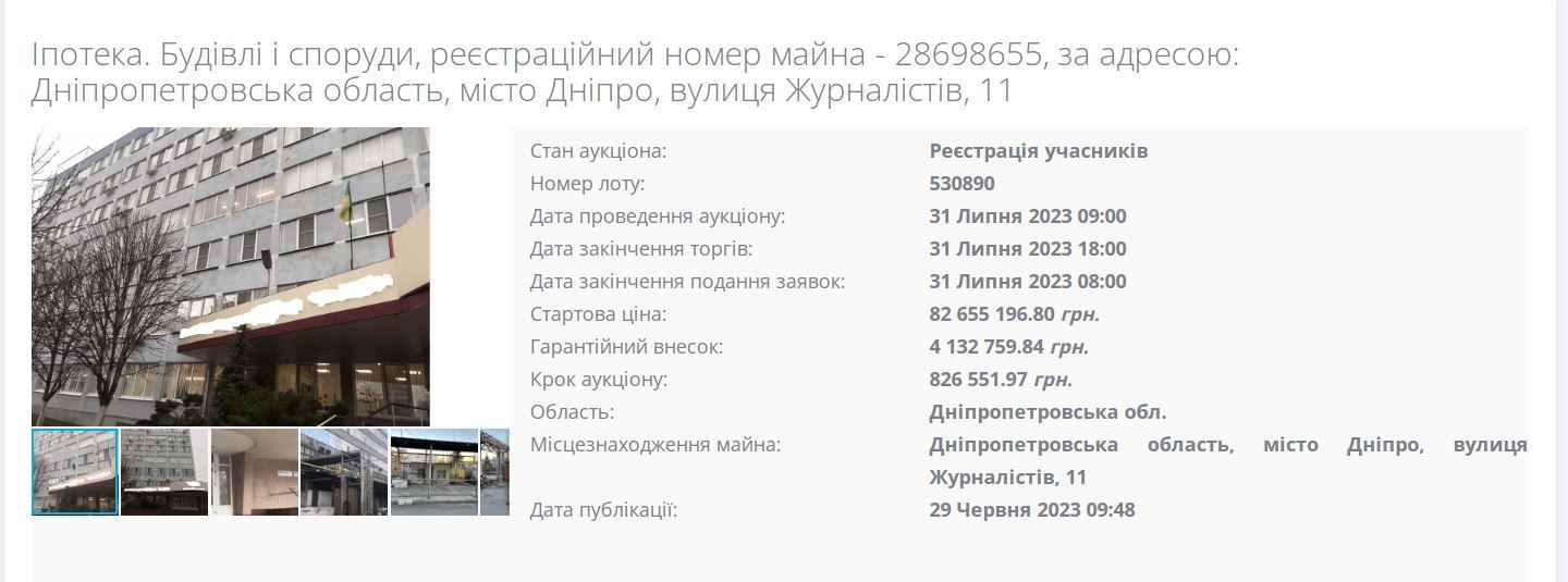 Про це йдеться в оголошенні на сайті державної платформи з продажу нерухомості СЕТАМ.