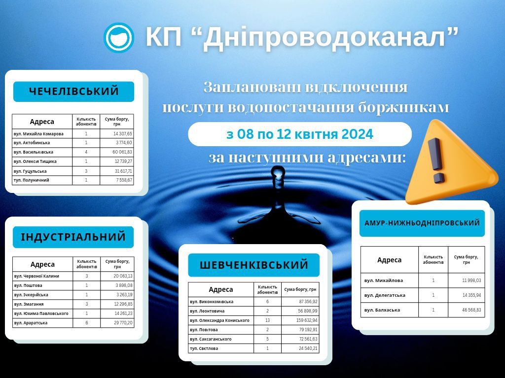 У Дніпрі продовжують відключати воду боржникам: список адрес на 8-12 квітня