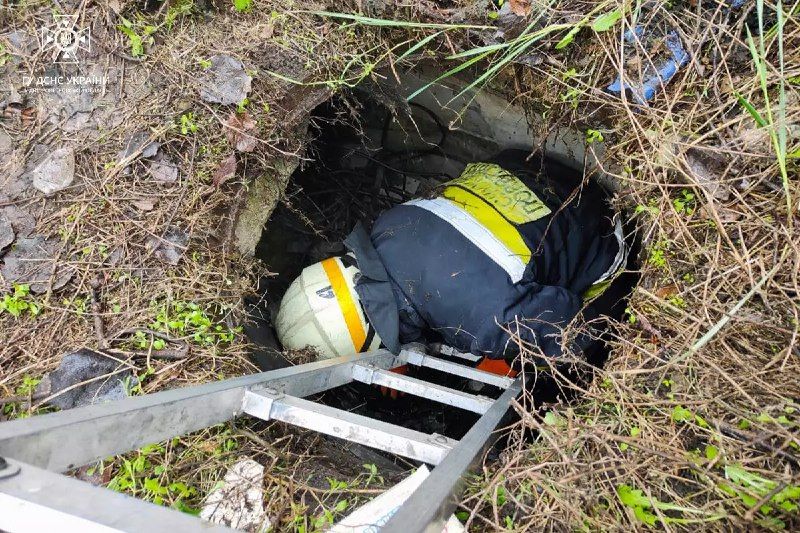 Прибувши на місце, рятувальники з'ясували, що тваринка знаходиться на глибині двох метрів у занедбаному колодязі.