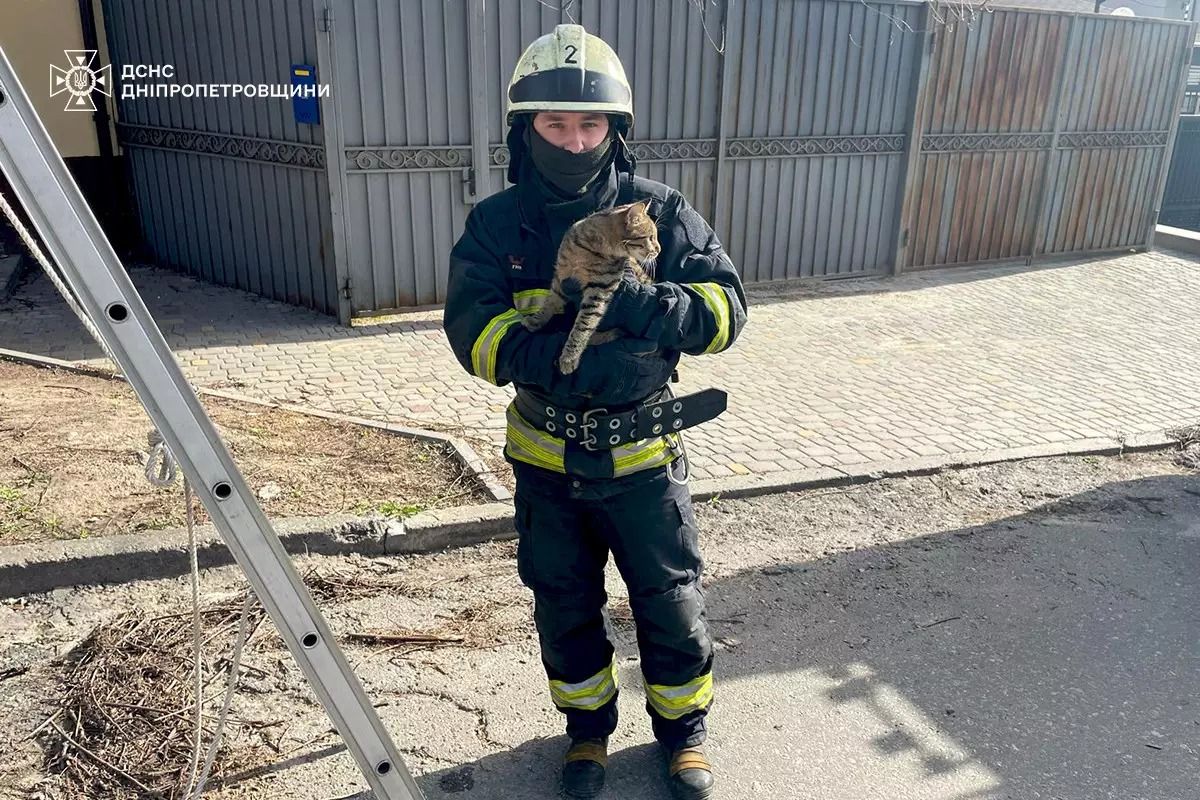 Вранці 1 квітня на лінію «101» зателефонувала стурбована жінка. Вона повідомила, що її кіт заліз на високе дерево та не може самостійно спуститись.