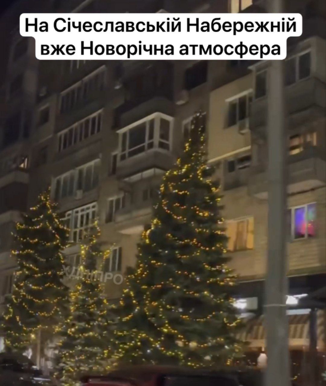Втім, дехто вже встиг відгуляти Гелловін та почав готуватися до новорічних свят. Зокрема, на Січеславській Набережній ялинки прикрасили яскравими гірляндами. Можливо це частина гелловінського декору, проте дніпряни зазначають, що панує саме новорічна атмосфера.