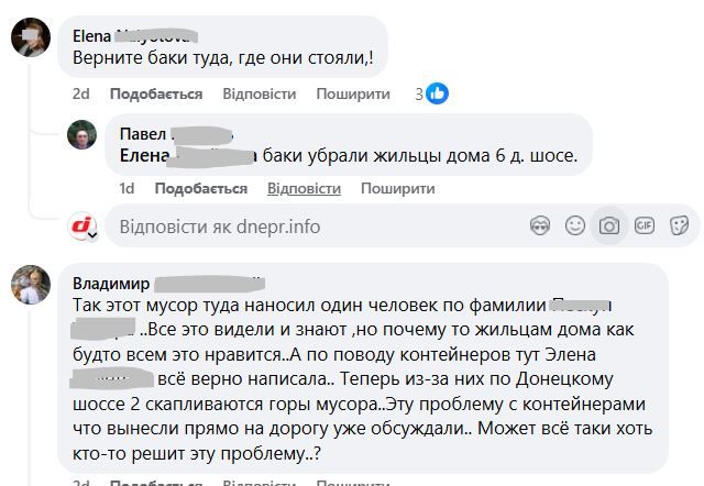 У коментарях жаліються, що сміттєві бази з двору поруч нібито перенесли в інше місце і зробили це сусіди. А хтось тепер приносить сміття під паркан.