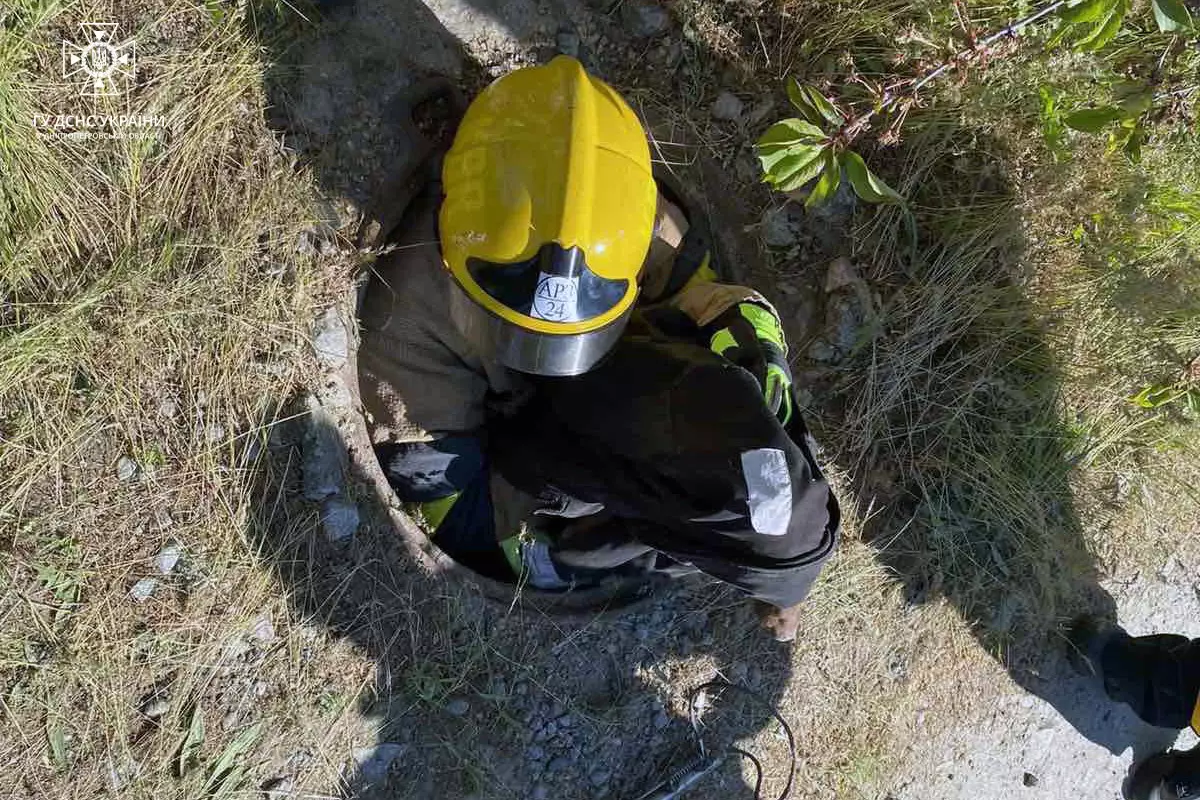 На місце оперативно виїхали рятувальники, там вони встановили, що тварина знаходиться у занедбаному колекторі на глибині орієнтовно двох метрів.