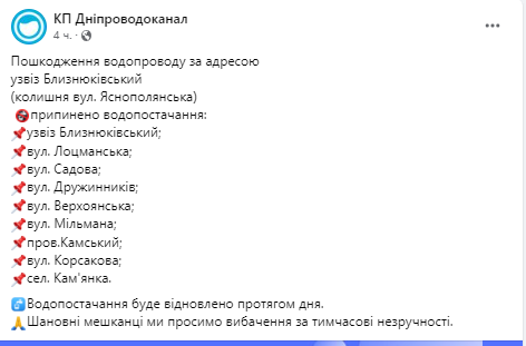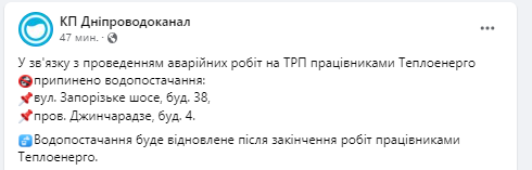 Сьогодні, 9 січня, деякі мешканці Дніпра залишилися без води.