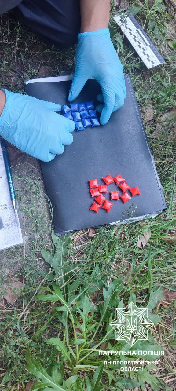 Під час спілкування 17-річний громадянин повідомив поліцейським, що він викинув у кущі два пакети з наркотичними речовинами. Також патрульні з'ясували, що неповнолітній встиг зробити дві "закладки".
