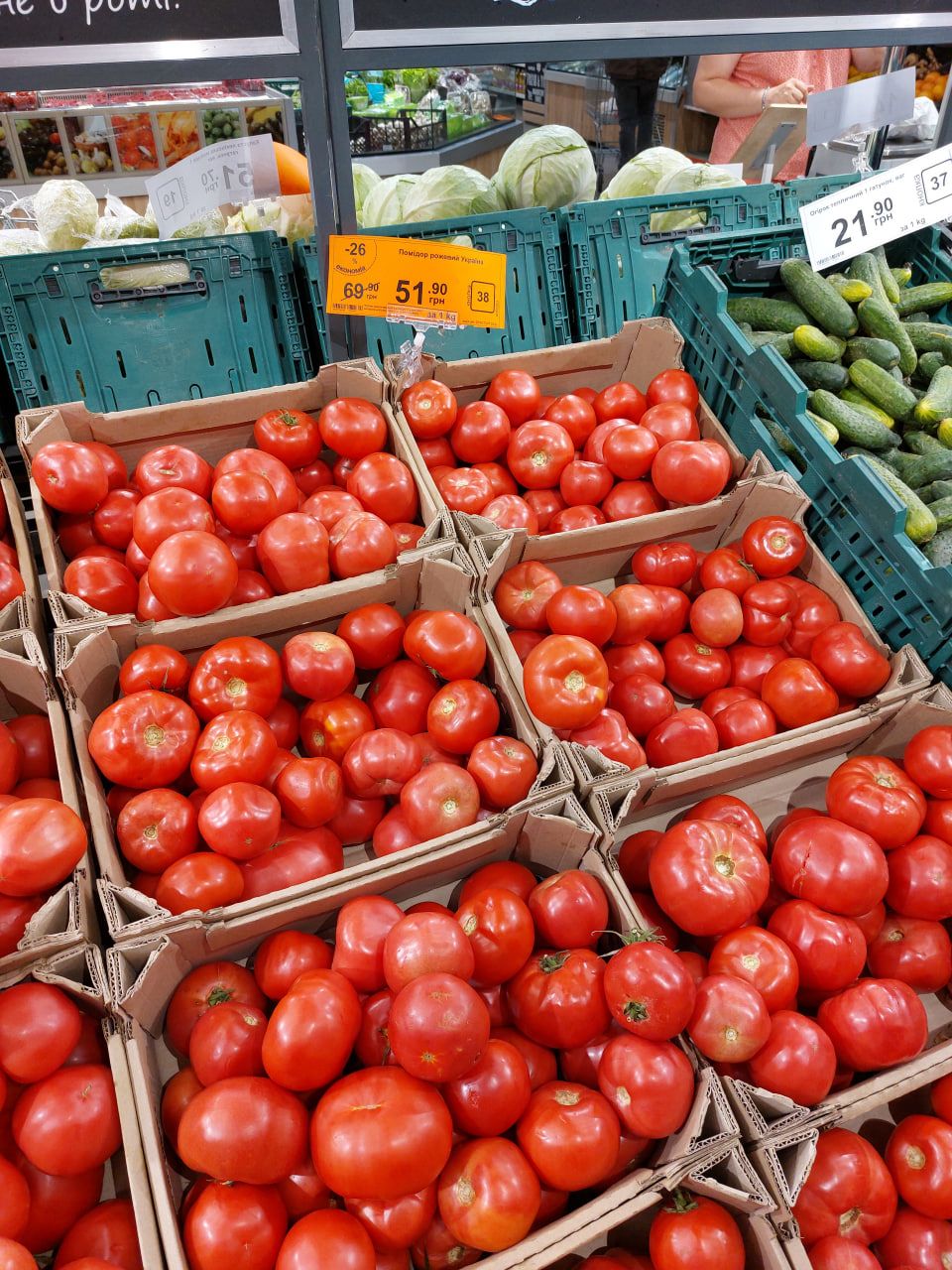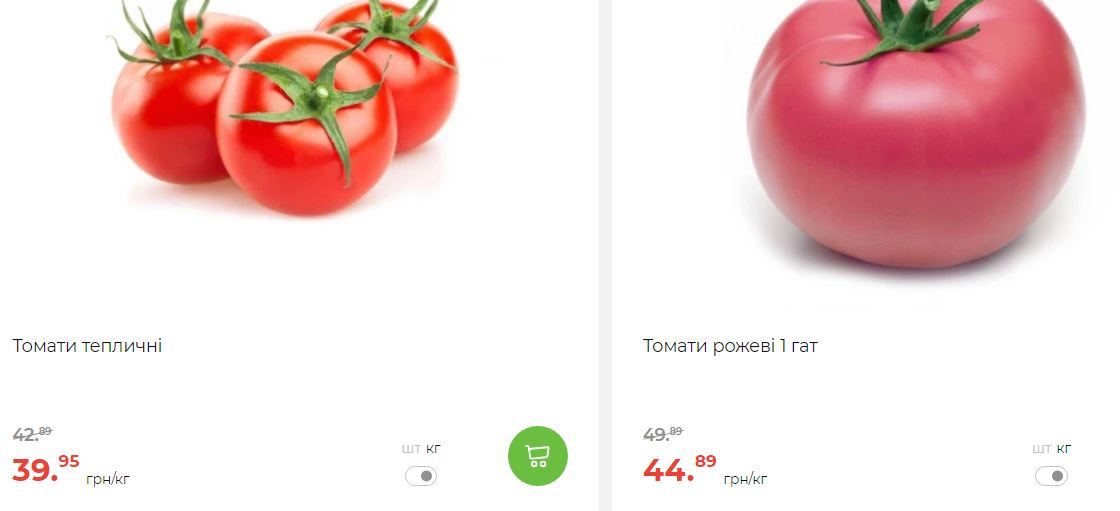 У відомих супермаркетах ціни дещо вищі. Вартість кілограма томатів залежить від сорту, виду, зовнішнього вигляду та розміру. До прикладу в супермаркеті Варус за один кілограм рожевих помідорів просять 51 гривню. Ще декілька днів тому ця ціна складала майже 55 гривень.