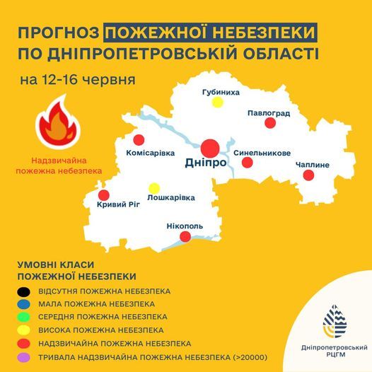 13-16 червня на території Дніпропетровській області очікується надзвичайна (V класу) пожежна небезпека.