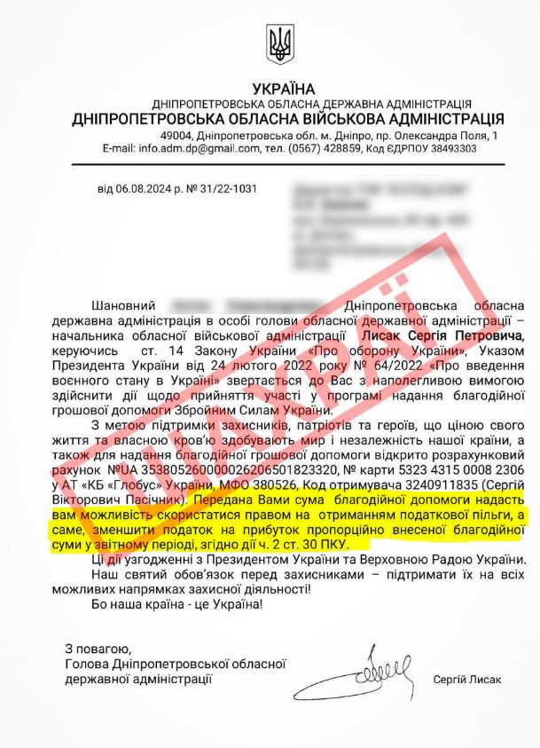 У Дніпрі та області шахраї пропонують підприємцям уникнути податків за донат на ЗСУ