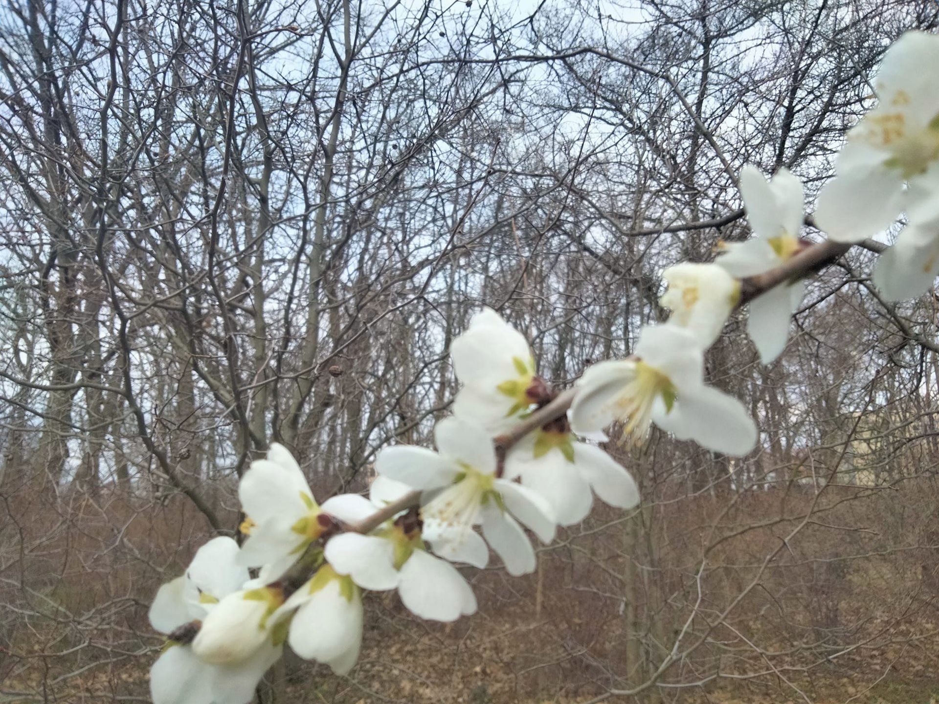 Також у цій зеленій зоні квітує мигдаль бухарський: