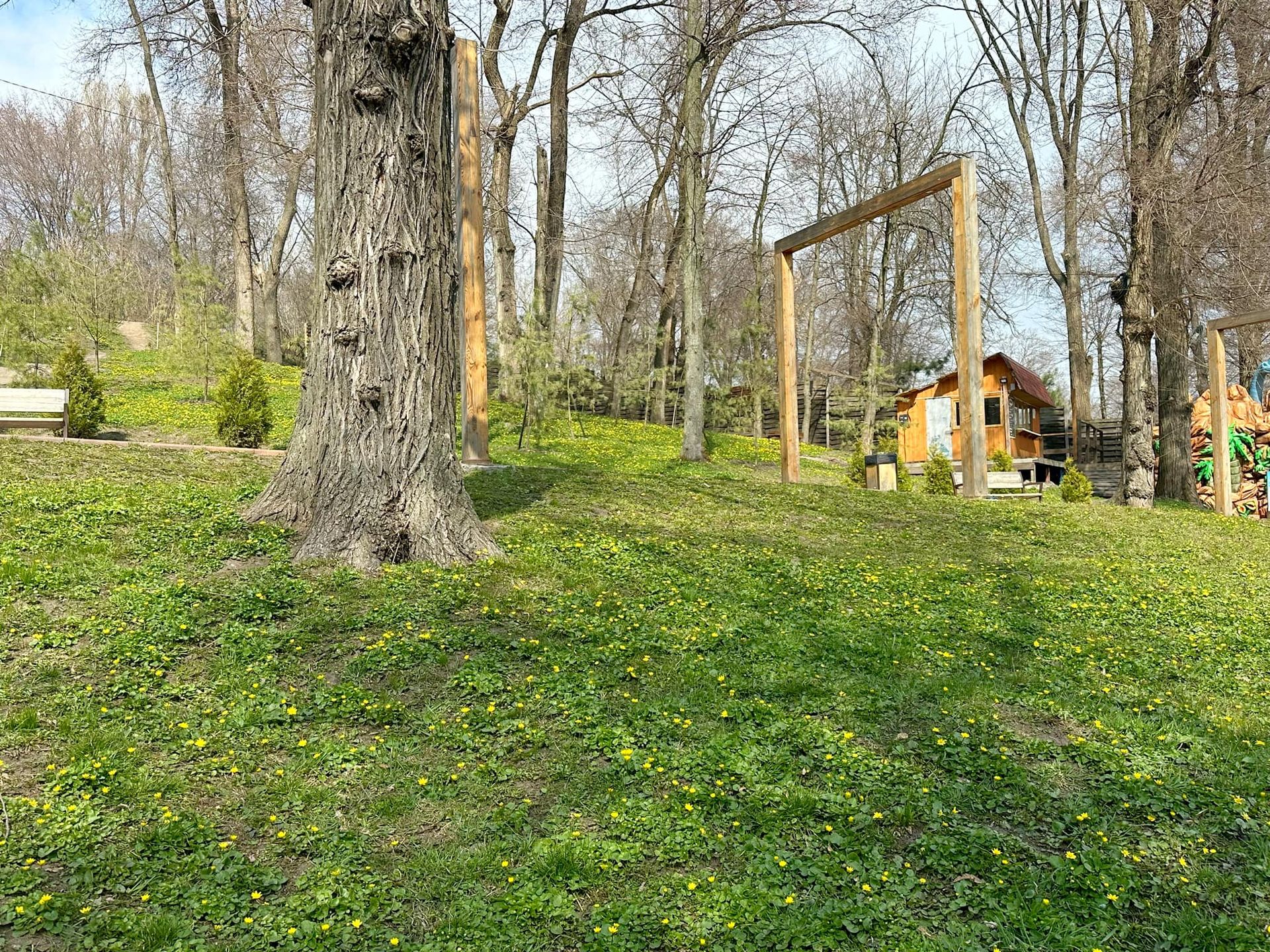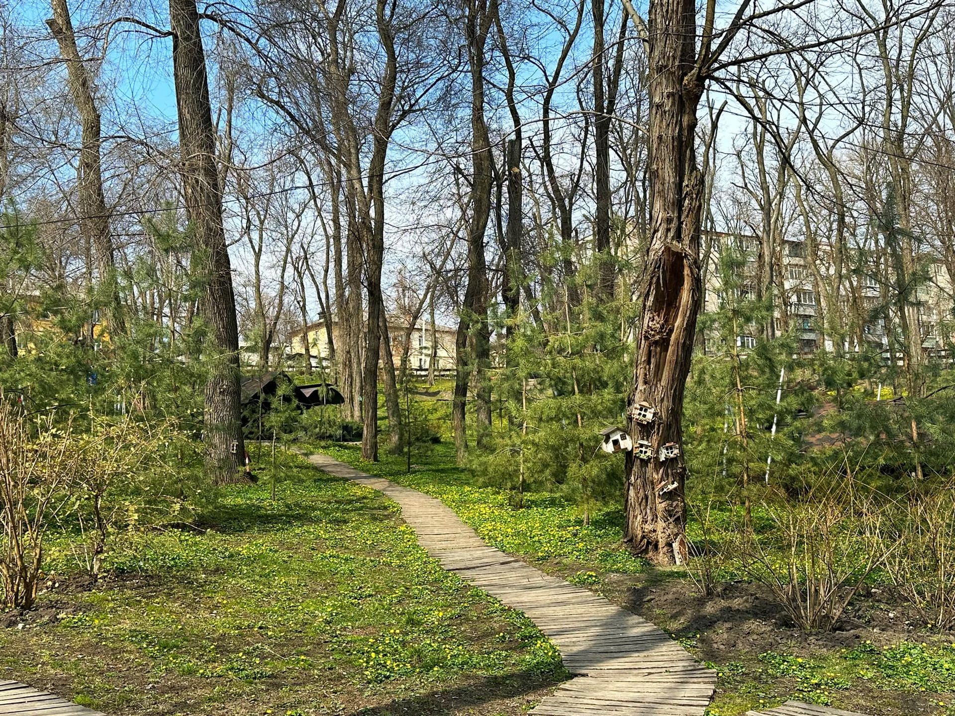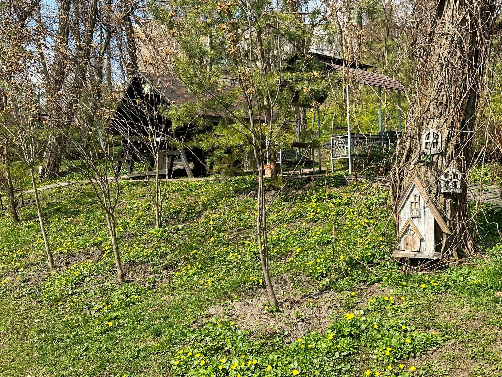 Зазначається, що у парку зараз квітують калюжниця, фіалка лісова та підсніжник (Galanthus).