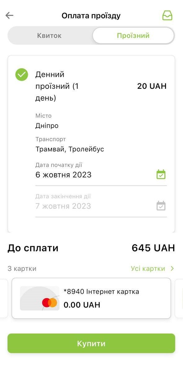 У рамках оновлення інтерфейсу допустили помилку у коді: під час онлайн-покупки проїзних квитків в дніпровському електротранспорті одразу обирались усі можливі варіанти загальною вартістю 645 гривень.