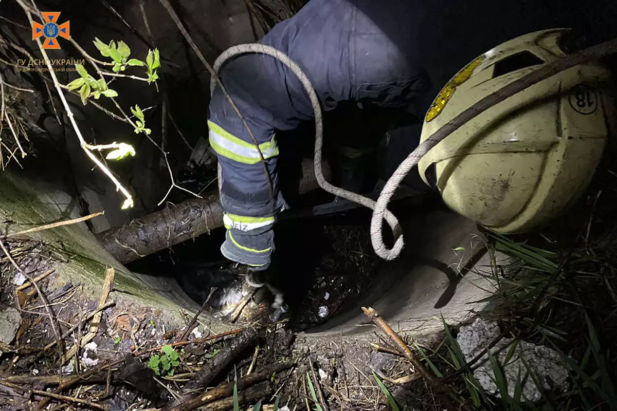 У Дніпрі в каналізаційний колодязь впав собака: його діставали рятувальники
