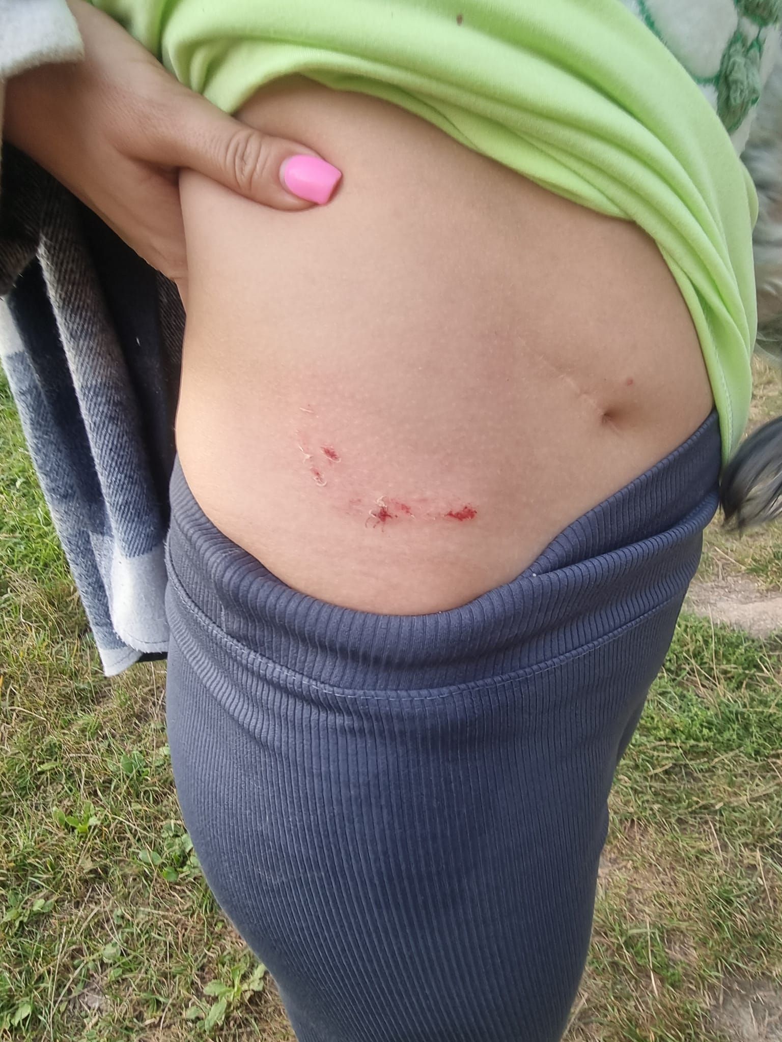 17 вересня близько 17:30-18:00 ця вівчарка вкусила мене у парку "Кирилівка" (вул. Новозаводська) та намагалась вкусити мого йоркширського тер'єра. Вівчарка бігала без повідка і без намордника та поводилась агресивно - поки її господарі - чоловік та жінка - бухали (по-іншому й не скажеш). Самі господарі вели себе неадекватно та погрожували "своїми зв'язками" і тим, що "якщо викличете поліцію, наживете собі ворогів". Після виклику поліції вони втекли, - зазначає постраждала.