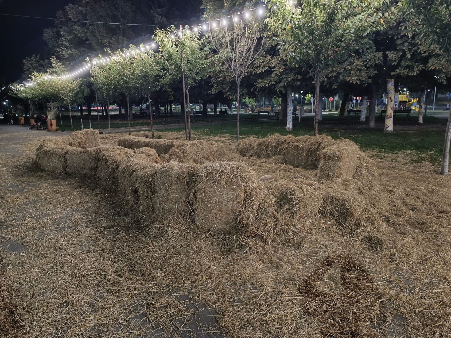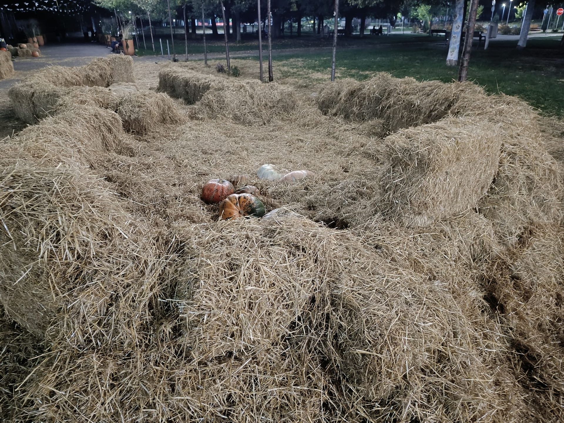 Але з часом вандали добралися до цієї інсталяції. Вони порозкидали сіно, постягували його на одне місце.