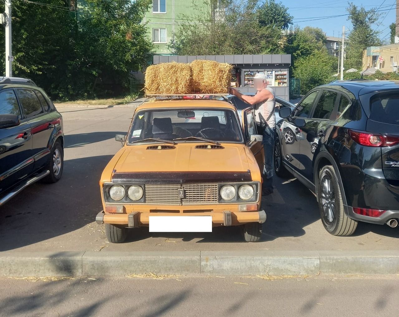 А один чоловік вирішив забрати кілька тюків з сіном додому:
