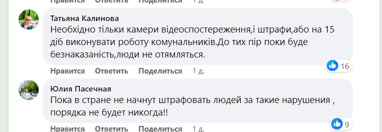 Місцеві мешканці в коментарях обурені такими діями вандалів. Вони пишуть, що за подібне потрібно штрафувати.