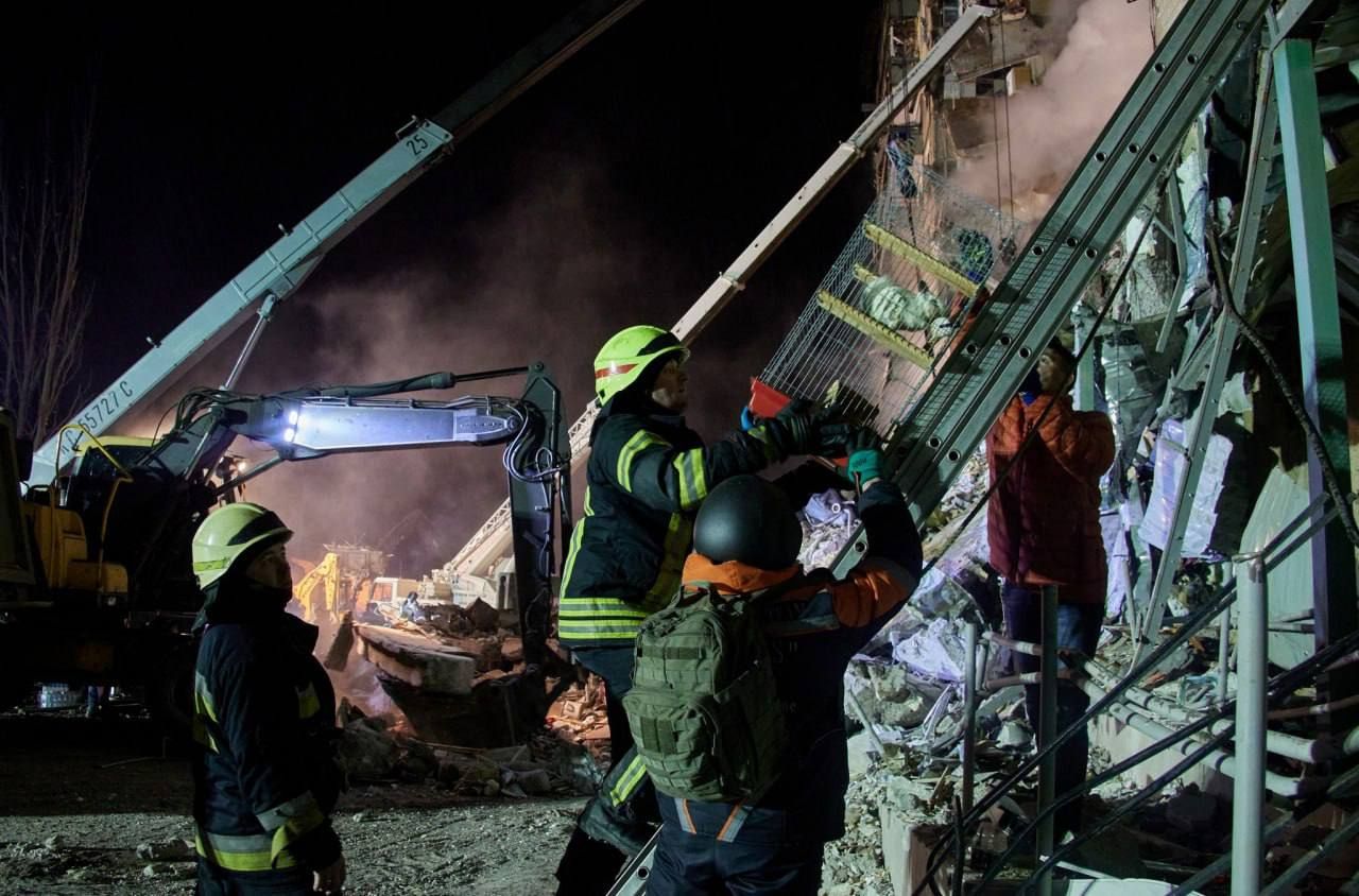 Уже більше доби триває пошуково-рятувальна операція на місці прильоту ракети в Дніпрі. За словами мера Дніпра Бориса Філатова, роботи орієнтовно триватимуть ще до 3 ночі. Надзвичайники та комунальники будуть працювати до останнього. Наразі доля 33 людей досі невідома.