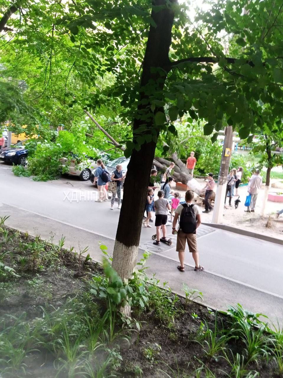 У Дніпрі величезне дерево рухнуло на припарковані автівки
