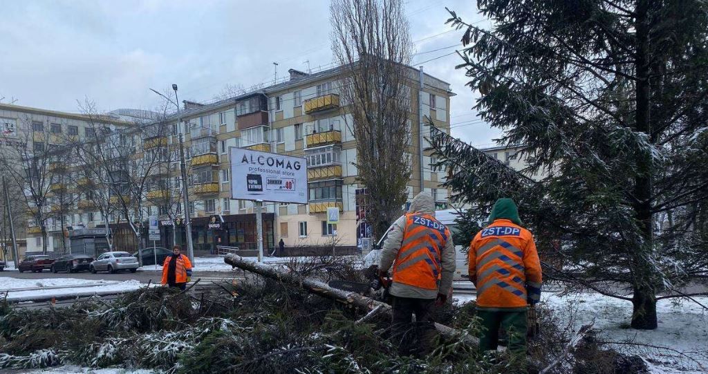 З ночі у Дніпрі хурделить. Наразі снігу вже немає, але сильний вітер досі робить біду в різних районах міста. Так, на проспекті Гагаріна, а саме на розі з вулицею Лізи Чайкіної, впала 10-метрова ялинка. Дерево звалилося на пішохідну частину. На щастя, у той момент ніхто не проходив поруч, тож обійшлося без постраждалих.