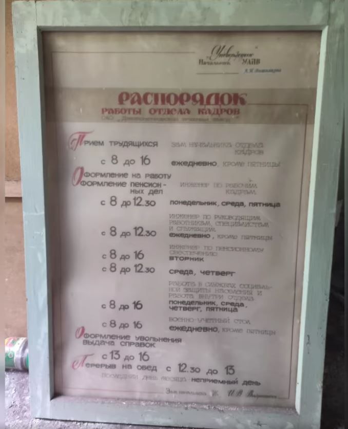Відома дослідниця історії міста Олена Присягіна побувала всередині однієї із закинутих адмінбудівель заводу, де колись був відділ кадрів. Своїми враженнями вона поділилася у Facebook-спільноті "Історія у фотографіях. Катеринослав - Дніпропетровськ".