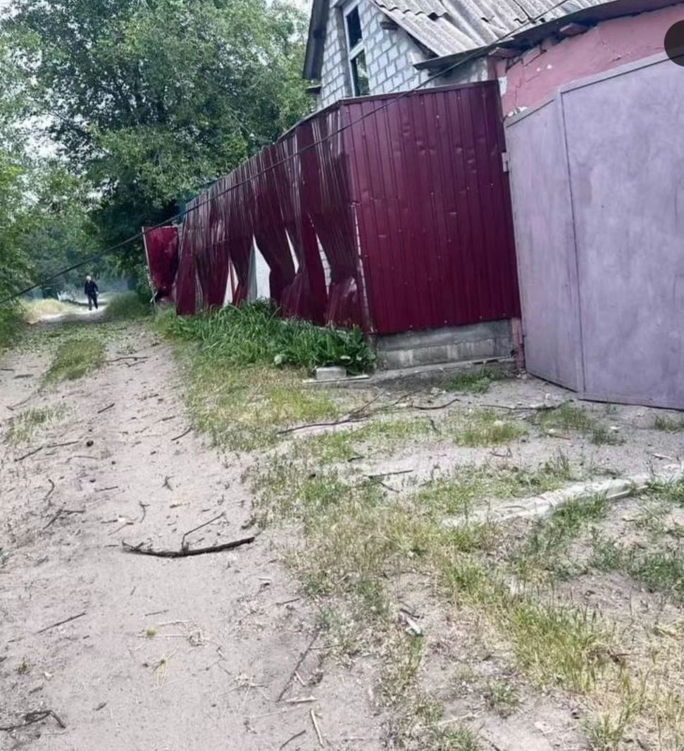 Є значні руйнування. У будинку повилітали вікна та двері. На подвір'ї лежать повалені дерева.