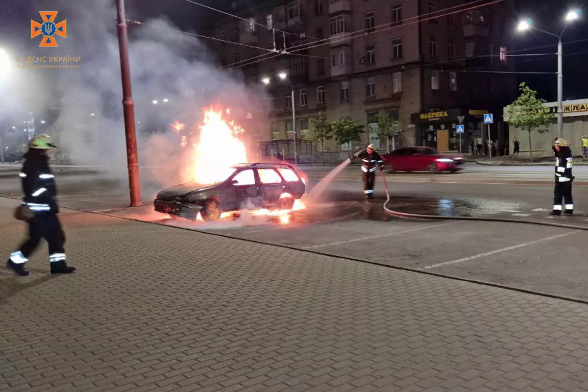Уночі у Дніпрі на вулиці Курчатова біля Слов'янського ринку горів автомобіль.