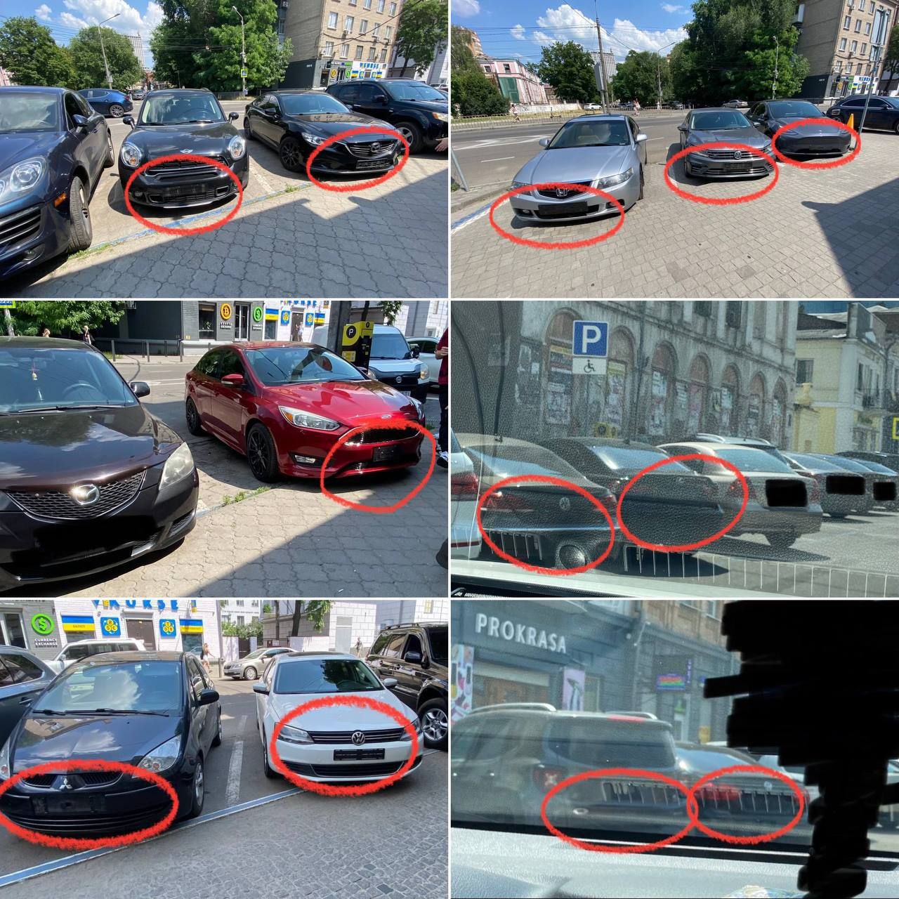 Мешканці Дніпра повідомляють, що в середмісті стоїть з десяток машин на яких немає номерів. Фото-докази опублікували в телеграм-каналі "Ну і Дніпро".