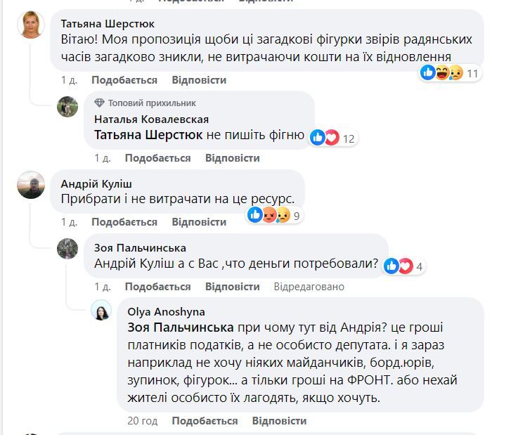 У коментарях думки людей кардинально розділилися. Хтось вважає, що ці фігурки треба знести і не витрачати на них ресурси, а хтось, що варто дати їм друге життя.