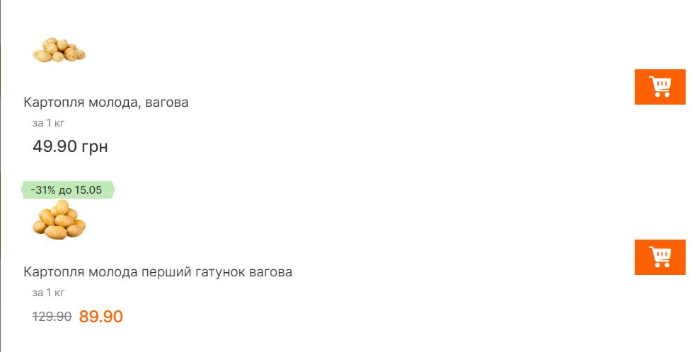 У супермаркетах же знайти молоду картоплю можна дешевше. Так, в АТБ вона коштує 49,95 грн за кілограм.