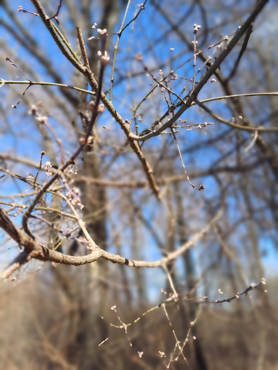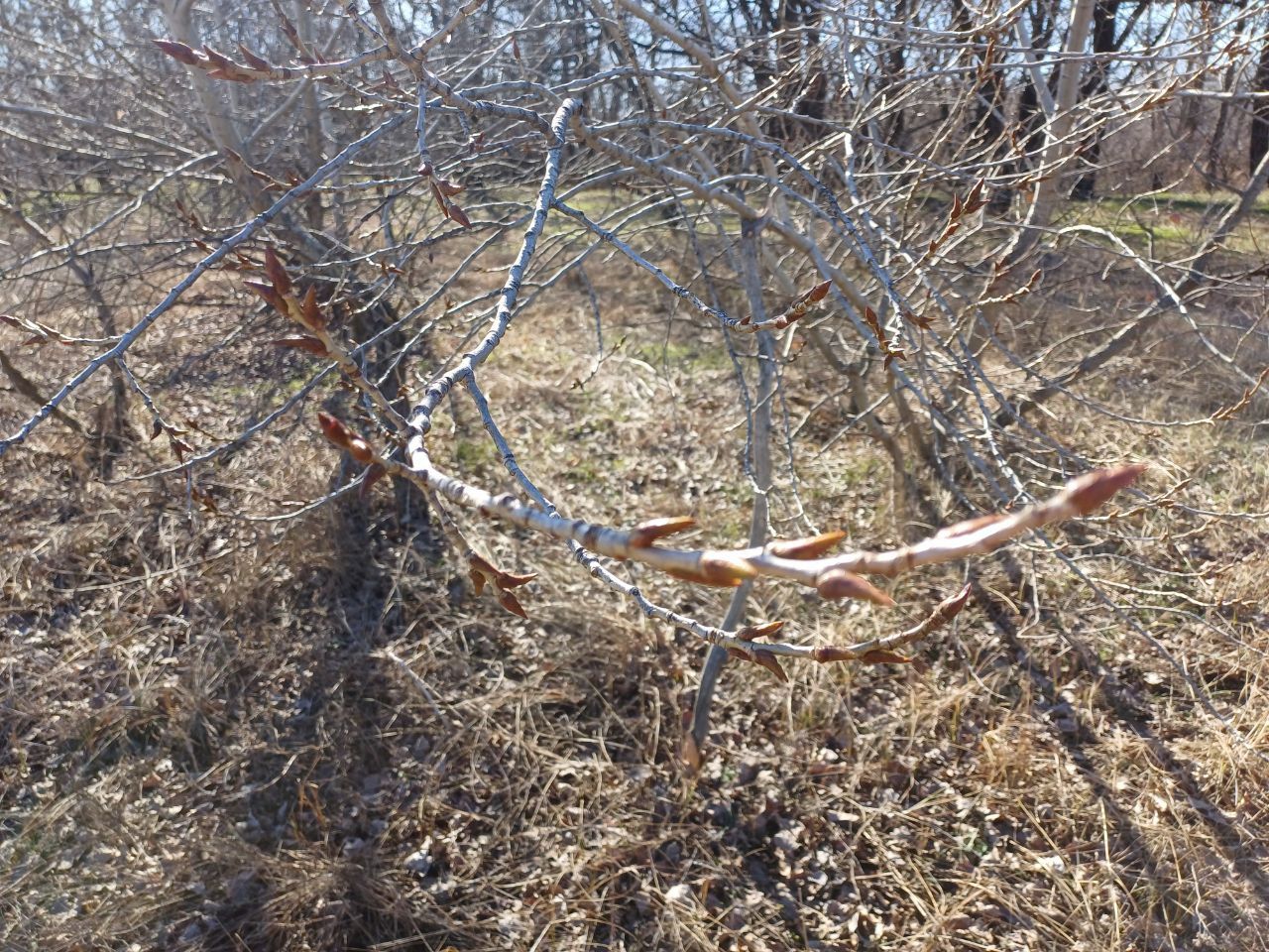 Прокидаються від зимового сну і дерева. Так, на косі на Перемозі на багатьох деревах вже з'явилися бруньки.