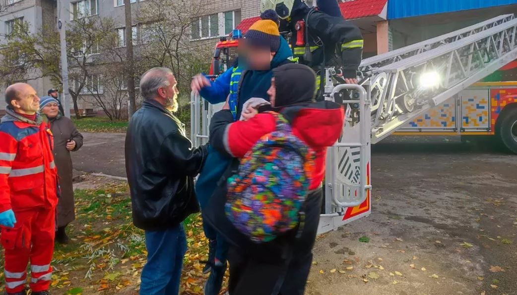 Із вікна квартири на восьмому поверху, за допомогою автодрабини рятувальники спустили до низу двох жінок, 1973 та 1983 років народження, та хлопчика і дівчинку, 2014 та 2016 років народження. Медичну допомогу врятовані не потребували.