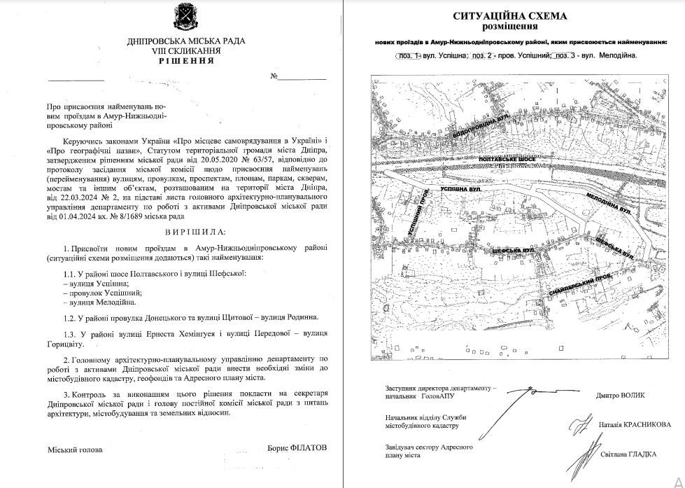 Зауважимо, що нині це тільки проєкт рішення, тобто його ще мають розглянути на сесії міськради, а потім документ повинен підписати міський голова Дніпра Борис Філатов. Якщо все буде добре, тоді в місті з'явиться ще п'ять вулиць. Де саме вони будуть можна побачити на ситуаційній схемі: