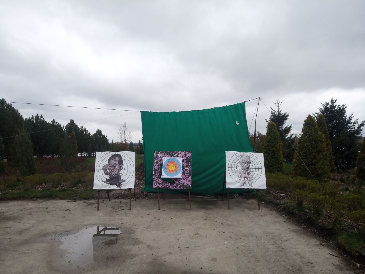 На мішенях зображені карикатури російського президента, який намальований в костюмі для карате та очільника "мінубивства" РФ у парадному військовому однострої. Таким чином, дніпряни можуть зігнати свій гнів на загарбників, поціливши стрілами з лука в портрети з їхніми обличчями.