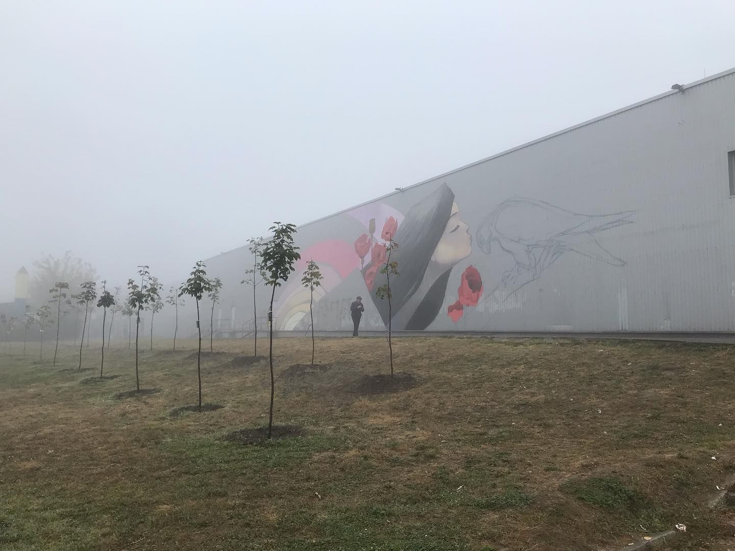Відомо, що мурал малюють на фасаді магазину Varus, що на вулиці Юрія Кондратюка, - якраз навпроти "Алеї живої пам'яті".