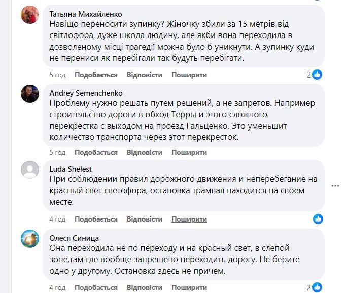 Проте не всі поділяють думку Віталія. У коментарях розгорілася палка дискусія. Люди зазначають, що остання смертельна ДТП не пов'язана з розташуванням зупинки трамвая, а трапилася через те, що жінка порушила ПДР та пішла на червоне світло.