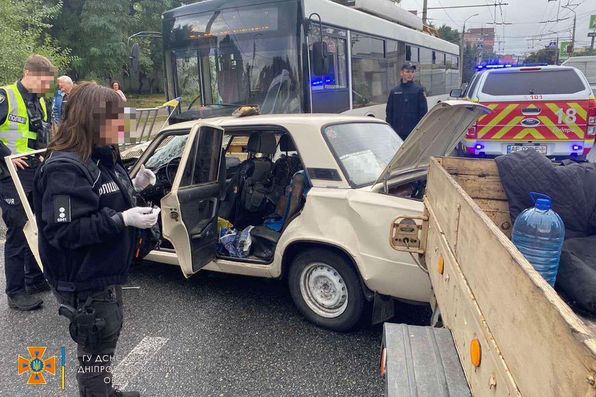 У Дніпрі зіткнулися тролейбус №20 та ВАЗ: одна жінка померла, ще троє людей постраждали