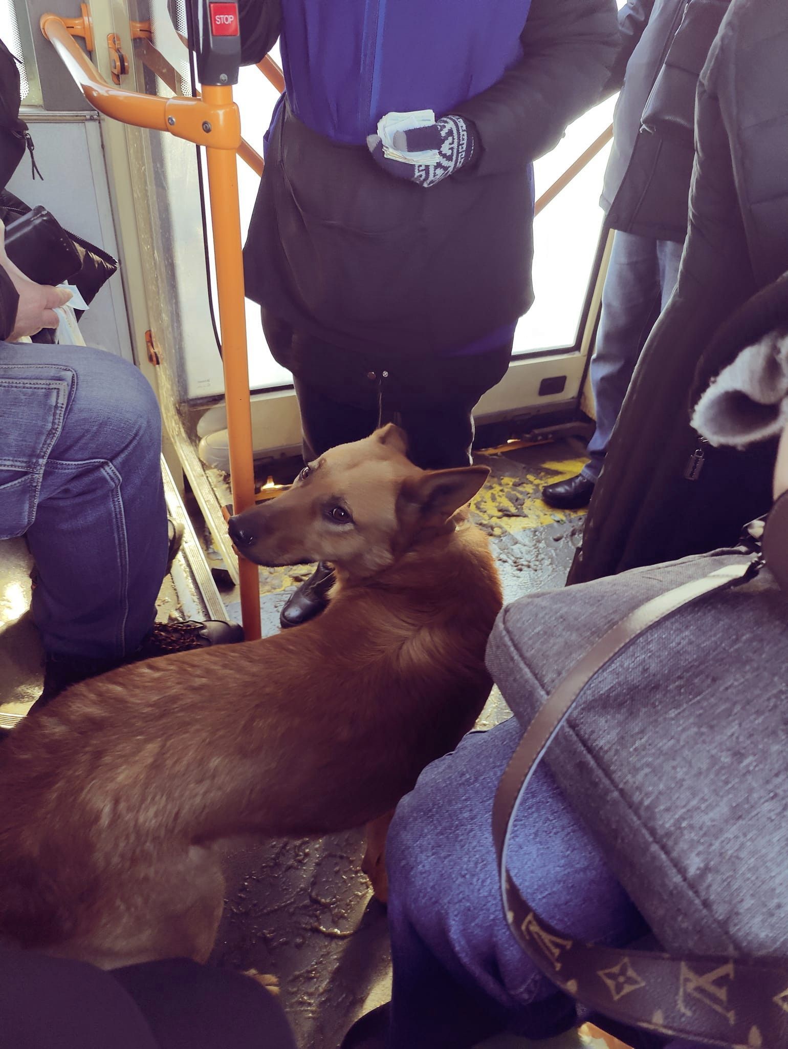 Схоже песик сильно змерз і не хотів виходити на вулицю, позаяк кондукторка не змогла його виманити із салону куском хліба, розповідають пасажири.