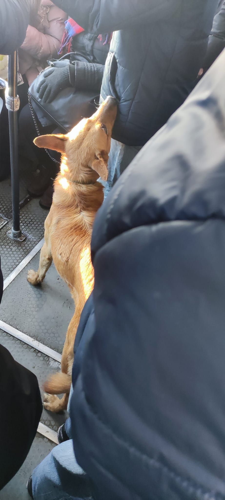 Після подорожей у тролейбусах, собака прибіг до офісної будівлі, що на проспекті Поля, 101. Небайдужі люди впустили песика до себе, аби пухнастик зігрівся. Люди припускають, що він домашній, позаяк виглядає доглянутим та чемним.