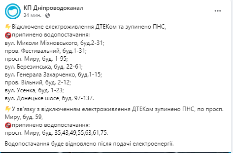 Сьогодні, 31 січня, деякі мешканці Дніпра знову залишилися без води.