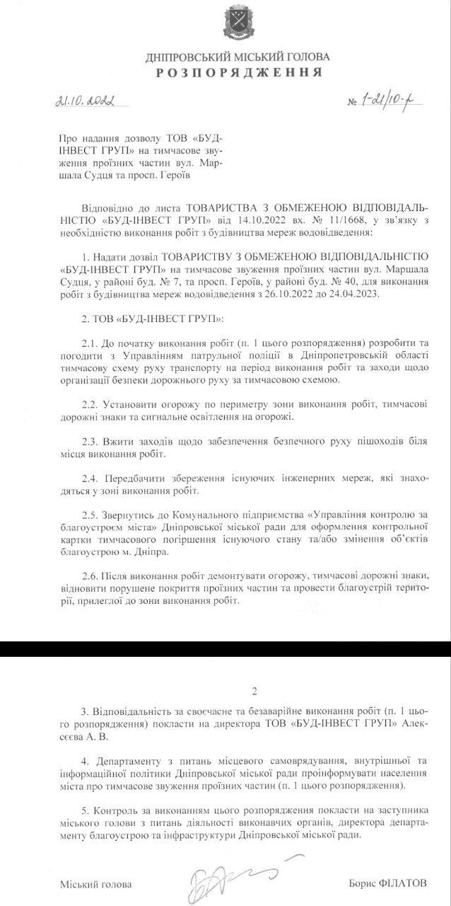 Зазначається, що з 26 жовтня тимчасово звузили проїзну частину в районі проспекту Героїв, 40 та вулиці Маршала Судця, 40. Це сталося через будівництво мереж водовідведення. Закінчити роботи обіцяють до 24 квітня 2023 року.