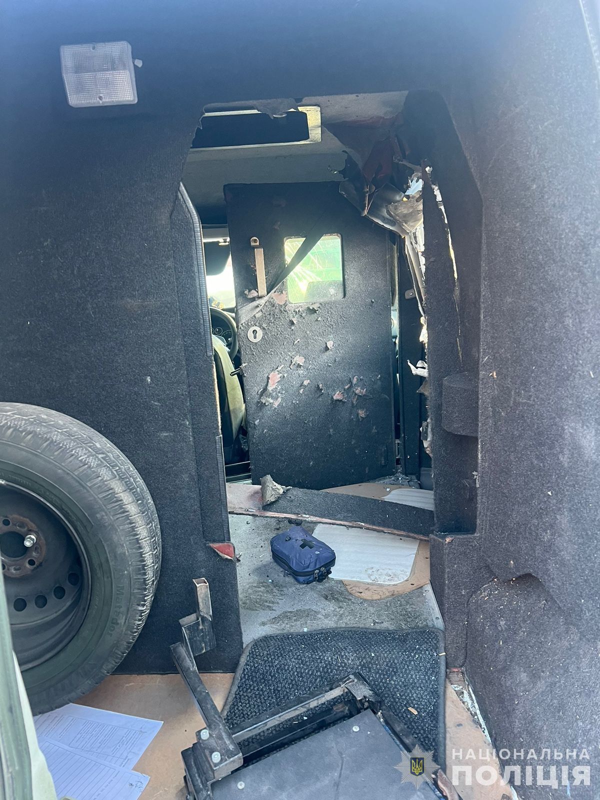 У цей час дрон влучив в їх транспорт та вибухнув. Автомобіль хоча й був броньованим, однак зазнав значних пошкоджень. На щастя, співробітники поліції тілесних ушкоджень не отримали.