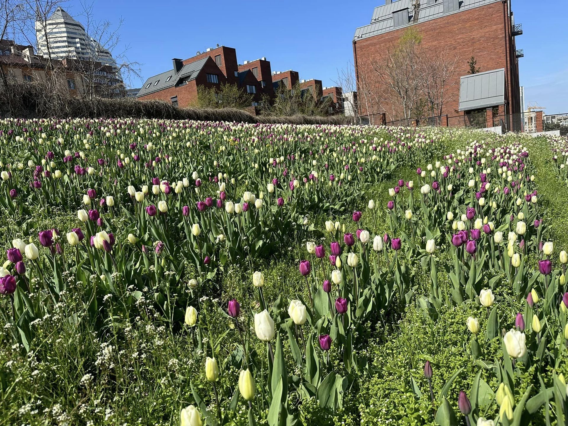 У департаменті парків та рекреацій показали поля різнобарвних тюльпанів, які розквітнули в парку Шевченка.