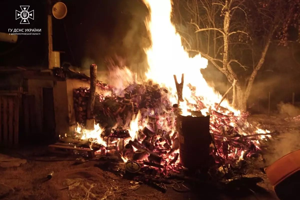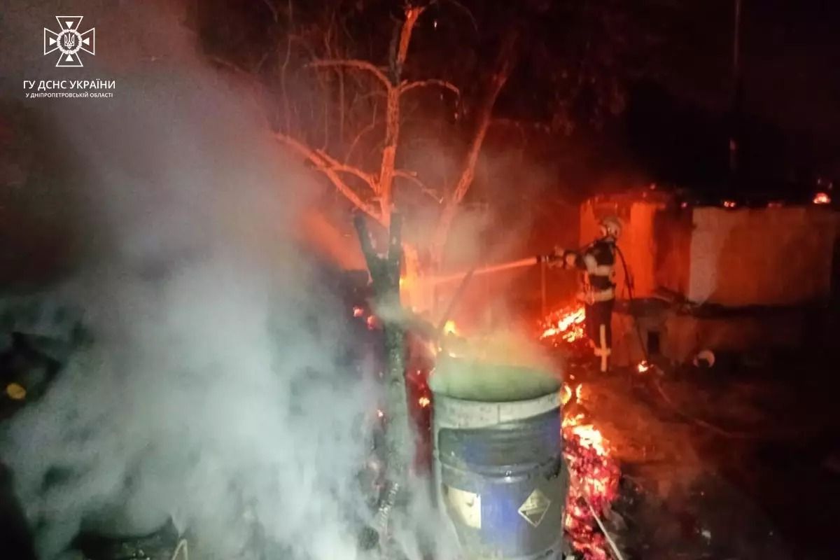 Сьогодні, 9 жовтня, на вулиці Криворізька селища Миколаївка Дніпровського району сталася масштабна пожежа на території приватного домоволодіння.