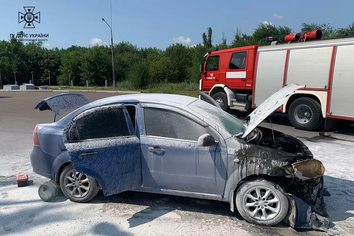 Сьогодні, 15 липня, на вулиці Черкасова у Кривому Розі біля автозаправної станції загорівся автомобіль Chevrolet Aveo.