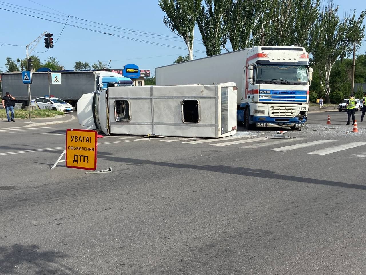 У Кривому Розі через зіткнення з фурою перекинулася маршрутка набита пасажирами: деталі від ДСНС